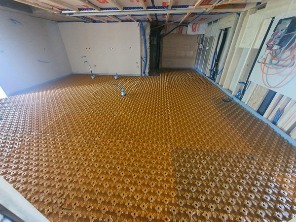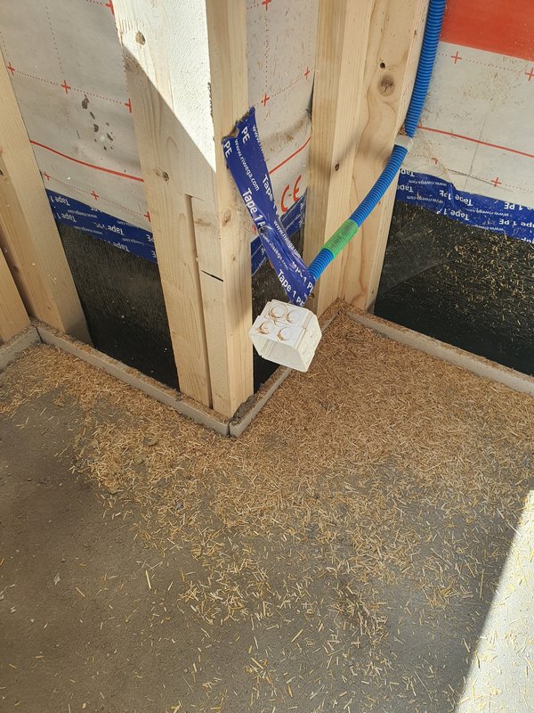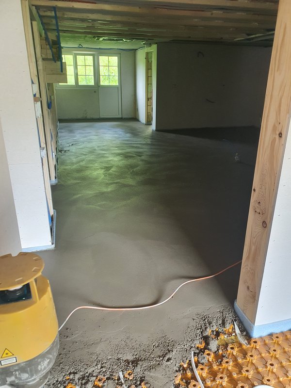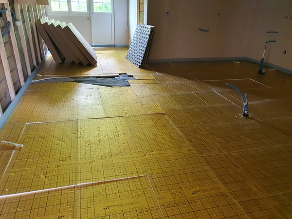 Neuer Bodenaufbau mit Bodenheizung und Wände mit Wärmedämmung aus Weizenstroh